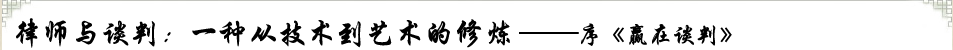 當然,本書最重要的還是由此提出了一個特別關鍵的命題:律師與談判,究竟應該是一種什么樣的關系?