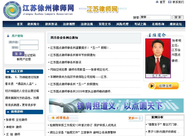 江蘇圓點(diǎn)律師事務(wù)所是經(jīng)江蘇省司法廳批準(zhǔn)成立的市司法局直屬合伙制律師事務(wù)所,現(xiàn)有資深律師三十余名,行政人員四名。圓點(diǎn)所座落在風(fēng)景秀美的云龍山腳下,擁有四百多平方米的現(xiàn)代化辦公用房,配備有各項(xiàng)辦公設(shè)施、通訊工具及互聯(lián)網(wǎng)絡(luò)。 圓點(diǎn)所在用人機(jī)制上提倡匯聚各方精英,共謀宏偉大業(yè)。在現(xiàn)有人員中,既有有著深厚的法律理論造詣的學(xué)院派律師,又有在各個(gè)業(yè)務(wù)領(lǐng)域?qū)嵺`經(jīng)驗(yàn)豐富、各有所長(zhǎng)的專業(yè)化律師,還有海外留學(xué)歸來(lái)的海歸派律師。圓點(diǎn)所在管理機(jī)制上采取民主管理,科學(xué)決策的方針。隨著圓點(diǎn)所管理結(jié)構(gòu)的不斷完善,律師隊(duì)伍正在不斷壯大。 “鐵肩擔(dān)道義,以點(diǎn)圓天下”是圓點(diǎn)人的執(zhí)業(yè)宗旨。維護(hù)法律的尊嚴(yán),維護(hù)客戶的合法權(quán)益,是圓點(diǎn)人的責(zé)任,恪守職業(yè)道德,遵守執(zhí)業(yè)紀(jì)律,提供優(yōu)質(zhì)高效的法律服務(wù),為客戶排憂解難,是圓點(diǎn)人的追求。 “ 專業(yè)、誠(chéng)信、優(yōu)質(zhì)、高效” 是圓點(diǎn)人永遠(yuǎn)不變的作風(fēng)。 圓點(diǎn)所建所伊始,針對(duì)律師業(yè)內(nèi)只將律師業(yè)務(wù)局限為訴訟案件、個(gè)個(gè)都是“消防隊(duì)員”的現(xiàn)狀,制定了立足于訴訟案件,努力開拓非訴訟案件業(yè)務(wù)的宗旨與發(fā)展理念,現(xiàn)已基本完成了律師業(yè)務(wù)由“訴訟型”向“經(jīng)營(yíng)風(fēng)險(xiǎn)防范型”進(jìn)而發(fā)展成為全面參與客戶經(jīng)營(yíng)管理、推動(dòng)客戶經(jīng)營(yíng)發(fā)展的“促進(jìn)發(fā)展型”的轉(zhuǎn)化,形成了既防范各類經(jīng)營(yíng)管理風(fēng)險(xiǎn),又促進(jìn)企業(yè)經(jīng)濟(jì)發(fā)展的新的法律服務(wù)格局。 律師事務(wù)所主任張孝明,系徐州律師協(xié)會(huì)理事、徐州仲裁委員會(huì)仲裁員,執(zhí)業(yè)十年來(lái),曾多次被評(píng)為徐州市優(yōu)秀律師,具有敏銳的思考能力、應(yīng)變能力和扎實(shí)的工作作風(fēng),他所承辦的案件受到普遍贊譽(yù)。主要從事刑事辯護(hù)、房地產(chǎn)訴訟及其他非訴訟法律事務(wù)。現(xiàn)擔(dān)任十多家黨政機(jī)構(gòu)及社會(huì)團(tuán)體、企業(yè)的常年法律顧問,提供了全局性、前瞻性的法律建議及優(yōu)質(zhì)、周到的法律服務(wù),給予了顧問單位有力的法律支持。為徐州電視臺(tái)“徐州警視”、“社會(huì)大觀”、“生活相對(duì)論”欄目的特邀嘉賓。 立足于點(diǎn),觀萬(wàn)象之圓,能通古今之事,曉萬(wàn)物之理。以圓點(diǎn)觀萬(wàn)象,萬(wàn)物有序,種種正常,事事在理。圓點(diǎn)律師愿以更專業(yè)的法律服務(wù),伴每一位客戶花好月圓,人月雙圓,不斷地從成功走向更大的成功!