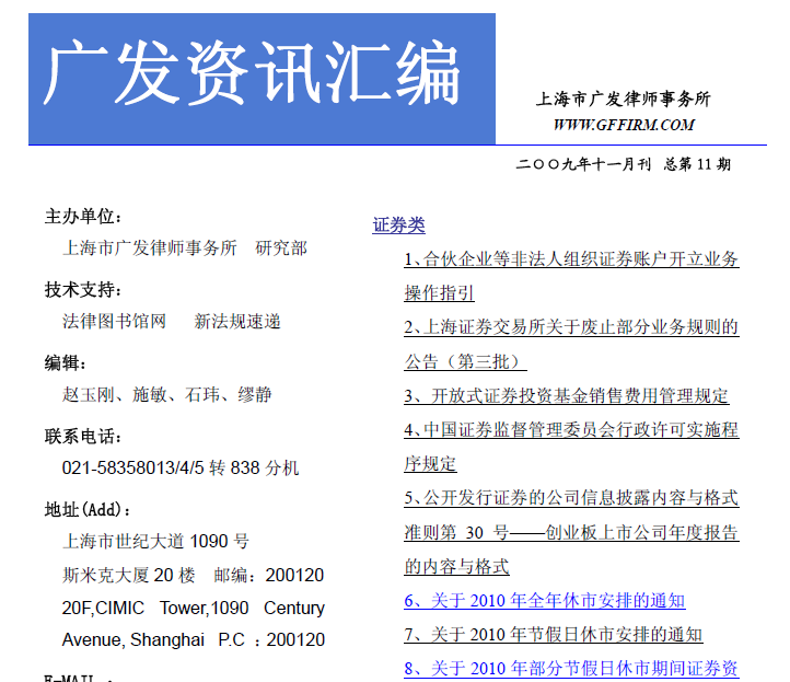 簡(jiǎn)報(bào)服務(wù)案例: 廣發(fā)資訊2009年11月刊 廣發(fā)資訊2010年1月刊