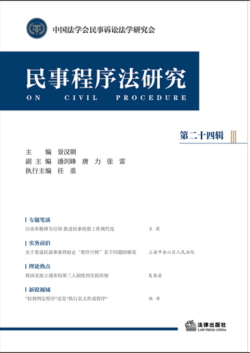 《民事程序法研究》(第二十四輯)分為專題筆談、實務(wù)前沿、理論熱點、新銳視域四個專題,收錄文章除對民事訴訟立法的熱點問題進行多個視角的展開外,還涉及指定遺產(chǎn)管理、不方便法院等《民事訴訟法》修法問題,“程序空轉(zhuǎn)”、能動司法、異步訴訟等司法實踐重點問題,等等。